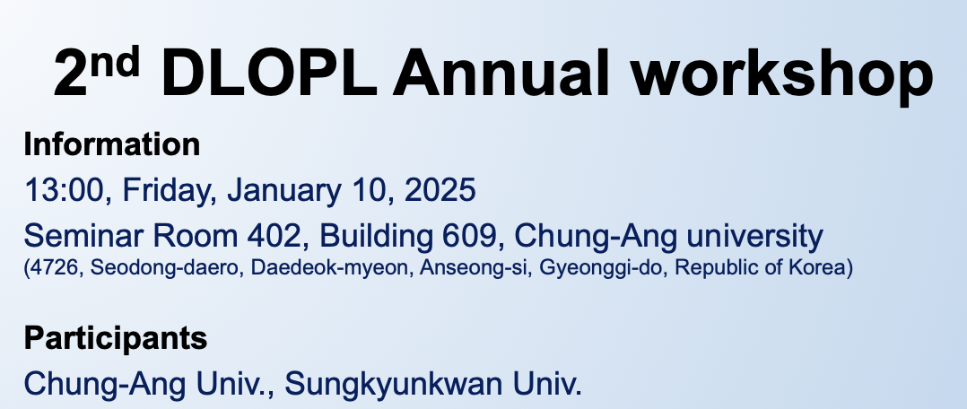 2nd DLOPL Workshop was held at Chung-Ang university! (2025-01-10) |